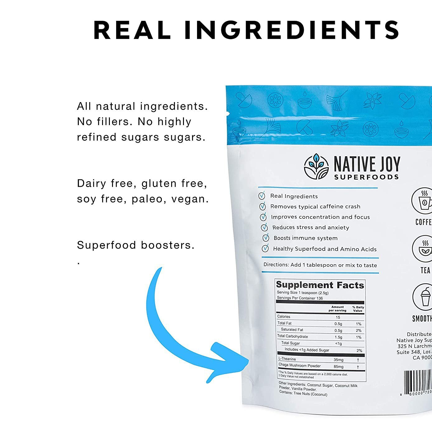 - IMPROVED FOCUS AND CONCENTRATION - Contains L-Theanine (which boosts cognition when combined with caffeine), Chaga Mushroom & all four MCTs (C6,C8,C10,C12) to give you a nootropic boost.